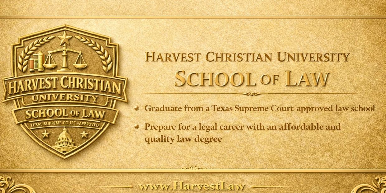 “Harvest Christian University School of Law, a Texas Supreme Court–approved law school, offers comprehensive training in constitutional law, civil rights, criminal and civil practice, business and commercial law, Indigenous and tribal law, ethics and professional responsibility, and community policing and public safety law. Through rigorous doctrinal courses and intensive advocacy, research, and experiential programs, the School of Law prepares graduates for advanced legal study, public service, and leadership in courts, governments, Indigenous nations, faith communities, and justice systems across Texas, the United States, and the world.”